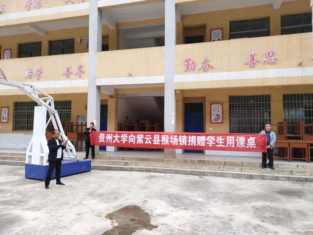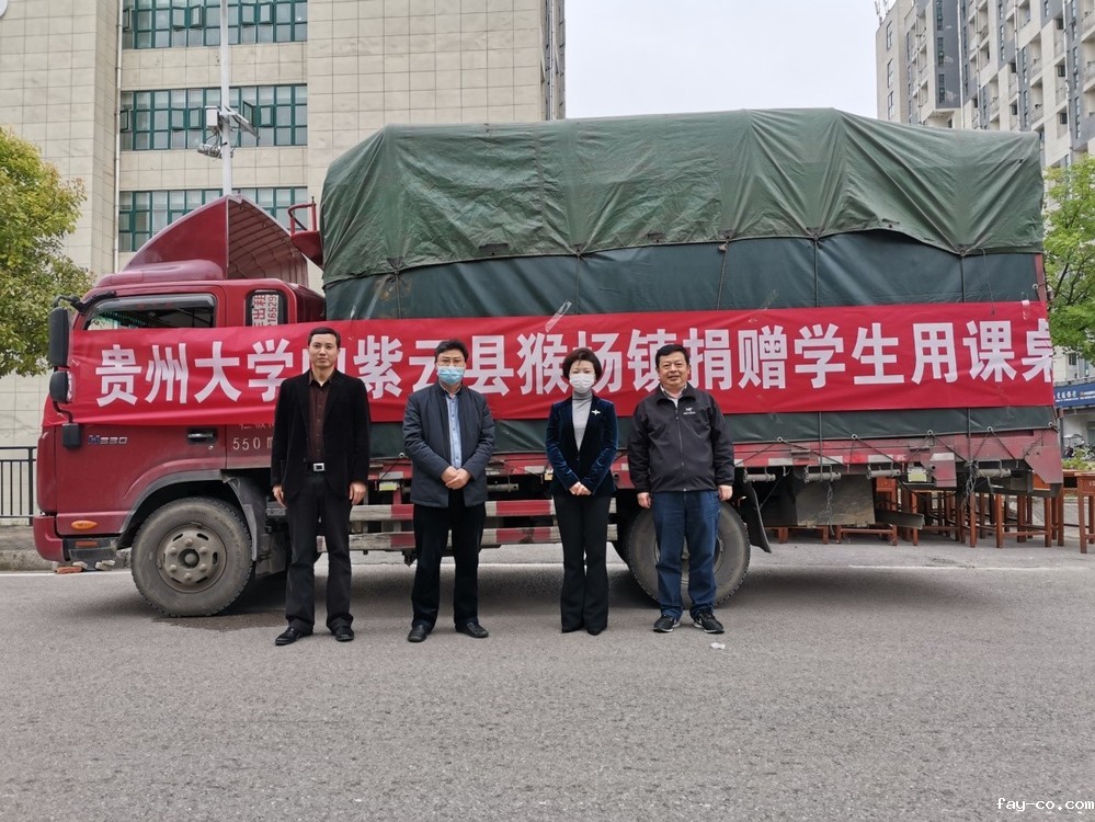 为了更好地助力紫云县猴场镇教育扶贫,421日,贵州大学向紫云县猴场镇平洋小学捐赠学生课桌仪式在西校区举行,此次捐赠学生课桌200张,资产管理处处长周昌洪、对外合作处处长刘颖、医学院党委书记吴涛、医学院党委副书记吴绍奎出席了捐赠活动。