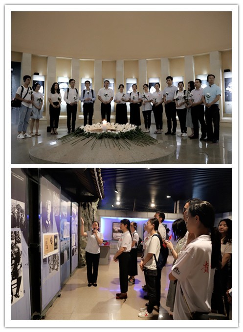 初心对共产党员来说是革命战争年代为了理想的无畏牺牲。参加活动的党员在讲解员的带领下,仔细观看了息烽集中营的图文展示资料。集中营惨无人道的迫害与革命先烈坚贞不屈的气节形成了鲜明的对比。党的战士、爱国将领、进步人士,无论男女、不分老幼,他们在这里为了心中的理想、为了党的事业和人民的解放承受着煎熬、折磨和冤屈,但他们从未因此而忘却初心,改变行径,禁锢于囹圄之中还成立了党的秘密支部,领导党员、团结难友不屈抗争,个人的生死名节早已置之度外,唯有党的事业、人民的期盼牢记心间。回顾先辈抗争的艰苦卓绝,感人至深,在观看了图文展示后,同志们在缅怀厅向革命烈士鞠躬默哀并敬献洁白无染的鲜花表达心中的无比敬意。