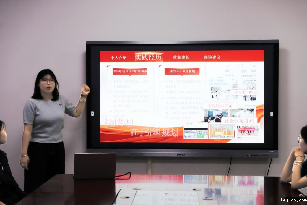 随后,社会实践单项奖学金获得者侯乐华分享了黄河滩生态守护的环保实践,以及作为志愿者通过抖音直播为家乡农产品代言的助农故事。同时,她现场演示了“创青春”公众号申报社会实践项目的流程,强调基层实践的重要性,多往基层跑才能看见真实需求。她的实践经历激励同学们走出课堂、深入实践,将知识转化为服务社会的力量,在基层磨砺中明确成长方向、锤炼责任担当。